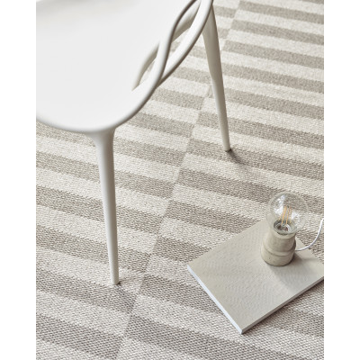 Irma är en svensktillverkad plastmatta från Horredsmattan. Irma har ett randigt mönster där två färgtoner möter varandra på mitten av mattan. Mattan är vändbar och kan därmed ligga med båda sidor upp. Här ser du Irma i färgen beige.