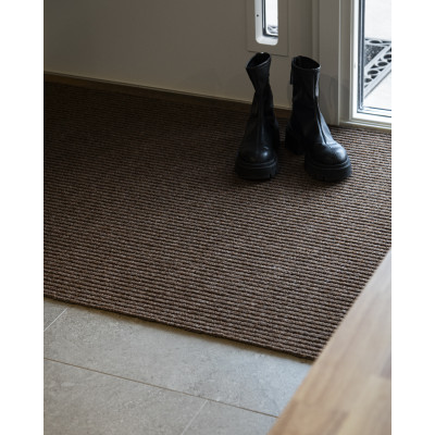 Kangos är en entrématta på metervara som ger dig en funktionell entré. Ovansidan har ett skrapmönster som effektivt samlar upp smuts och grus, och som skyddar dina golv från blöta skor och slitage. Baksidan är gummerad vilket gör att mattan ligger stabilt på golvet. Här är Kangos i färgen beige.