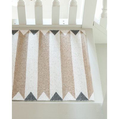 Plastmattan Peak är en svenskvävd plastmatta från Horredsmattan. Mönstret består av klassiska ränder men med små trianglar som avslutning mot långsidan i grått och vitt. Plastmattor är praktiska och lätta att tvätta och hålla rena. De passar också utmärkt så väl i exempelvis köket, som i tvättstugan eller i hallen. Här ser du Peak i färgen beige.Fotograferad i storlek 70 x 150 cm.